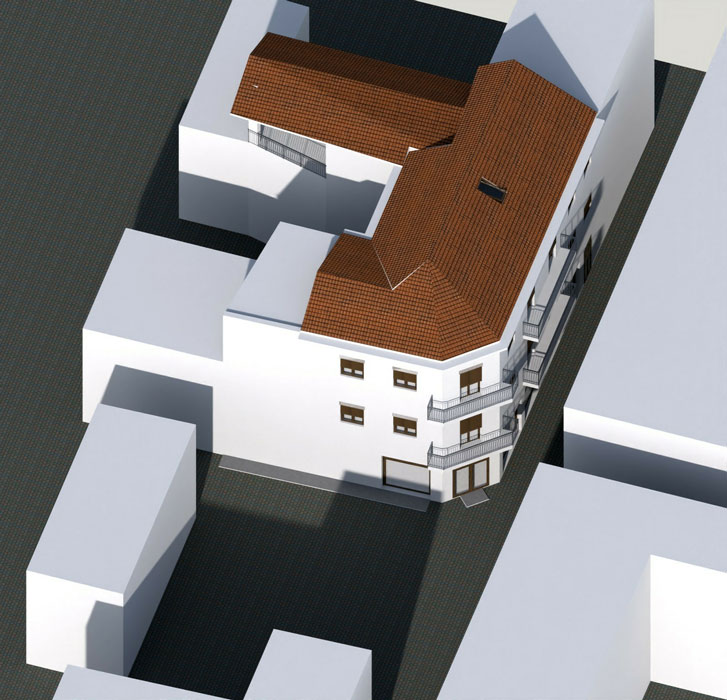 Struttura a capriate in legno lamellare con presenza di marcati fuori-quadro e punti di raccordo obbligati, fase di progettazione comunale, definitiva ed esecutiva (con richiesta di permessi ed occupazione suolo pubblico)